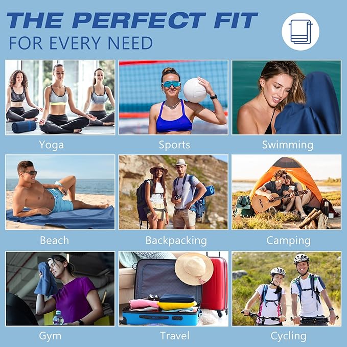 - Multipurpose: microfiber towel set available in 3 colors; The size is about 60 x 30 inches, allows you to use them as a swim towel for drying off, a gym towel for working out, or a small beach towel for vacation to keep you dry and clean; Suitable for outdoor, swimming, camping, gym, yoga, hiking, backpacking and working out