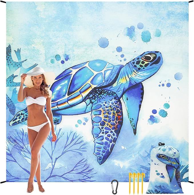 Beach Blanket Waterproof Sandproof Beach Mat 79" X 83" /10'x9'for 2-8 Adults Quick Drying Outdoor Picnic Mat Beach Accessories for Travel, Camping, Hiking
