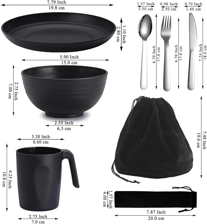 - GREAT VALUE SET: You will get a beautiful set of cutlery, the set includes 1 large plate, 1 bowls, 1 large capacity cup and 1 set of stainless steel cutlery, the cutlery includes knife, fork and spoon.