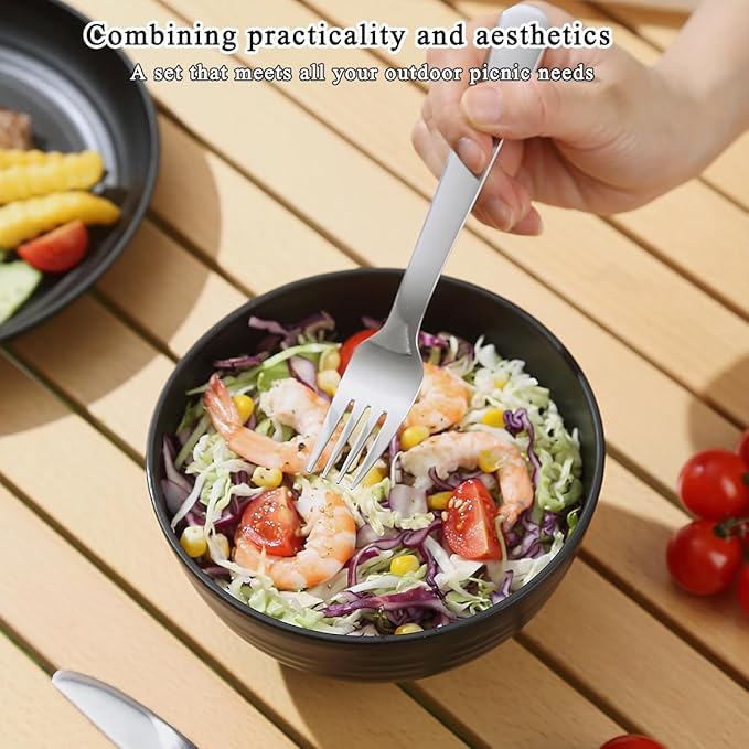 - MULTIPURPOSE: These utensils can hold a lot of food, such as fruits, desserts, salads, pasta, appetizers and more. Perfect for school, camping, picnics, etc. and for daily meals at home.
