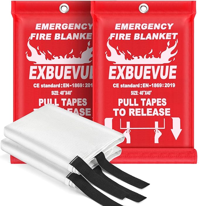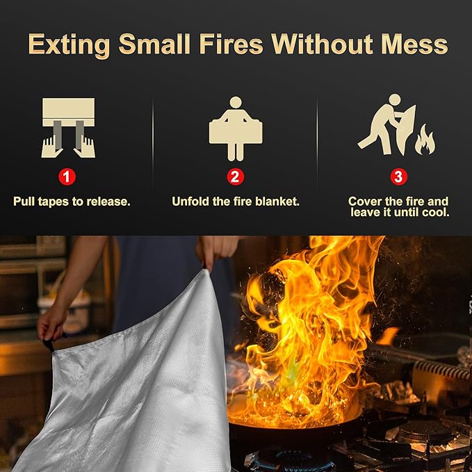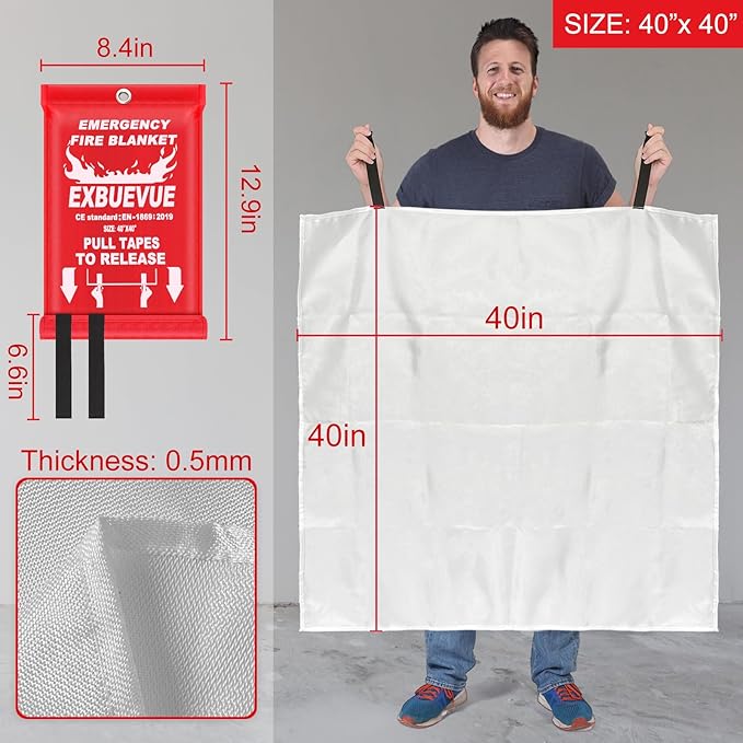 Emergency Fire Blanket for Kitchen and Home, 40” x 40” Fire Extinguishing Blanket(2pcs), Fire Suppression Blanket, Fire Safety Blanket, Fiberglass Flame Retardant Blanket