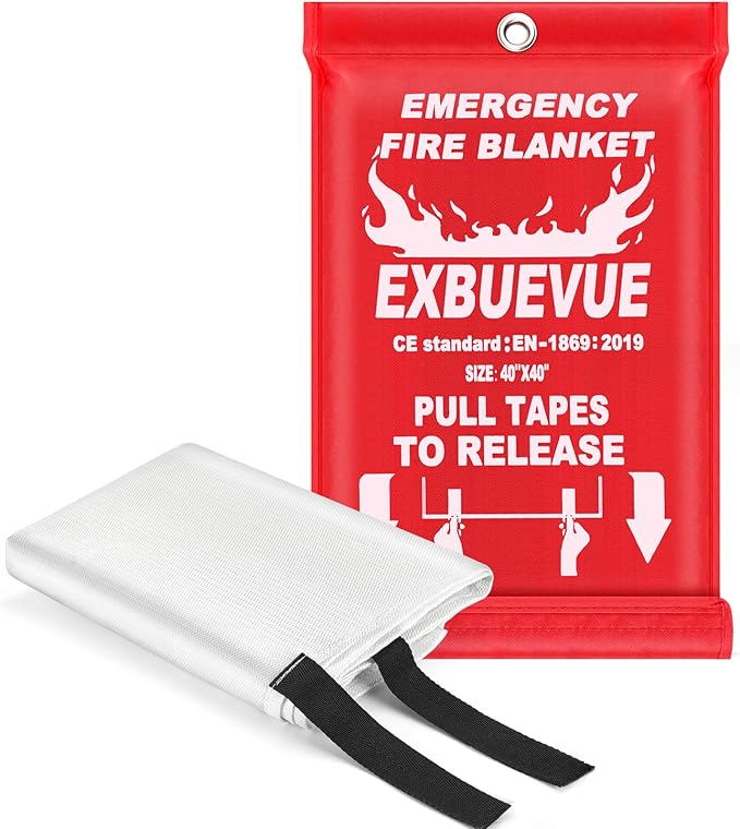 Emergency Fire Blanket for Kitchen and Home, 40” x 40” Fire Extinguishing Blanket, Fire Suppression Blanket, Fire Safety Blanket, Fiberglass Flame Retardant Blanket