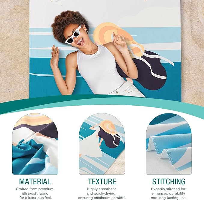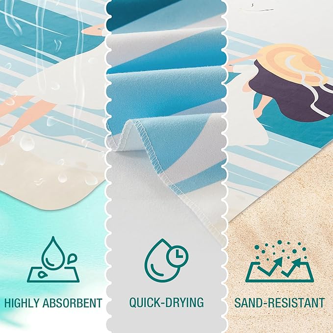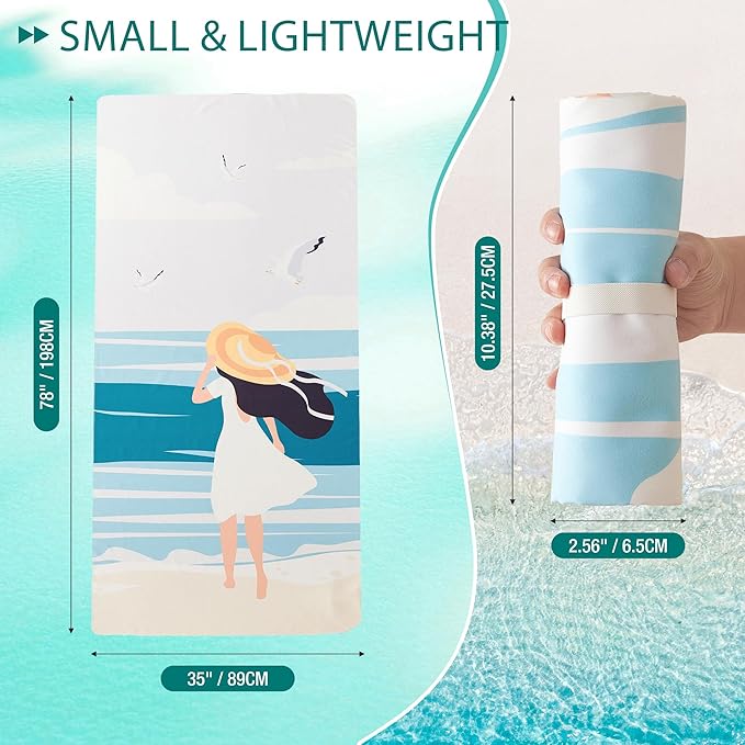 HYSEAS Lightweight Ultra-Thin Beach Towel, Oversized 78"X35" for Adult - Sand Free, Quick Dry, Perfect for Swimming, Beach, Yoga, Travel, Camping, Essential Beach Accessory & Vacation Gift, Beach Girl