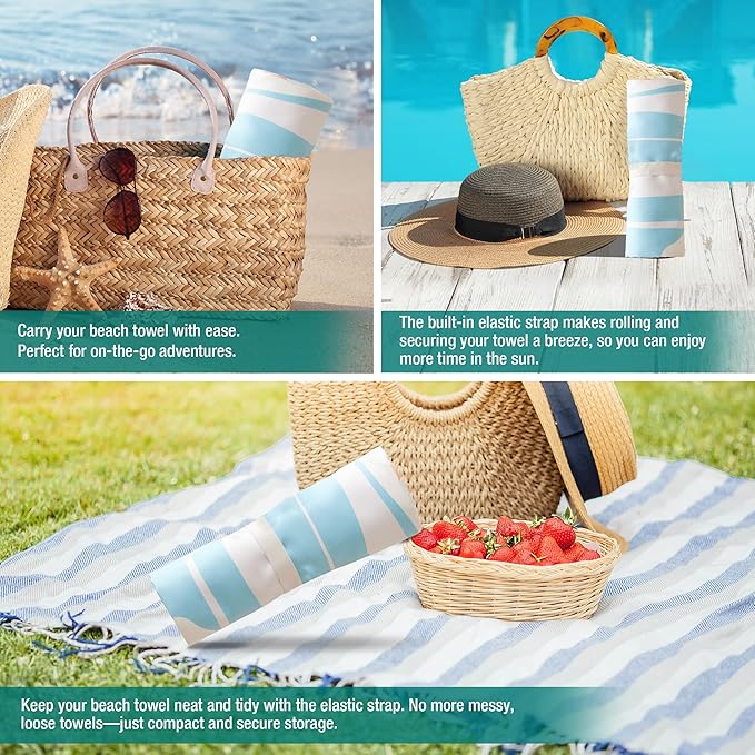 - Sand-Free Luxury: Say goodbye to gritty sand sticking to your beach essentials! Our towels boast a sand-resistant microfiber construction, ensuring a hassle-free beach day. Simply give it a shake, and watch as the sand effortlessly slides off, leaving you with a clean and serene space to enjoy