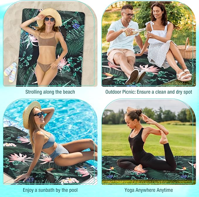 - Sand-Free Luxury: Say goodbye to gritty sand sticking to your beach essentials! Our towels boast a sand-resistant microfiber construction, ensuring a hassle-free beach day. Simply give it a shake, and watch as the sand effortlessly slides off, leaving you with a clean and serene space to enjoy