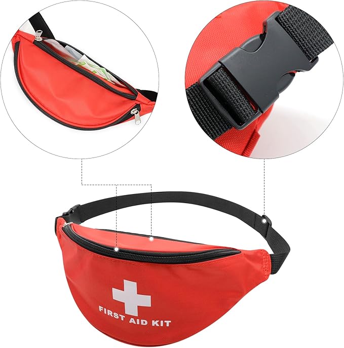 Faylapa Empty First Aid Bag Fanny Pack, Travel Pouch Bag 11.02x5.51x3.54 inch Waist Bag for Travel, Home, Office, Vehicle, Camping, Outdoor (Bag Only)