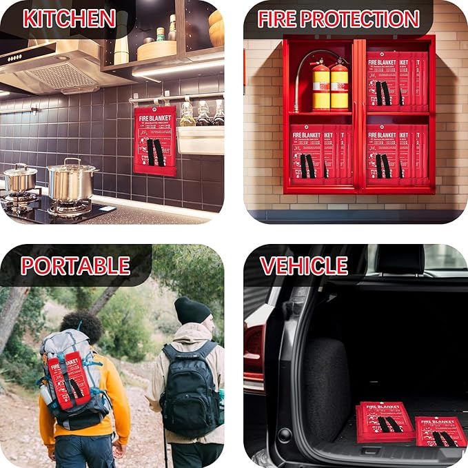 - Fire Blanketts for Safety: Emergency home fire safety devices to protect your and your family's safety. Placing a fireproof blanket in a home kitchen, backyard, fireplace, grill, office, camping site, or as part of a vehicle rescue kit is a very wise choice, but I don't want you to use it