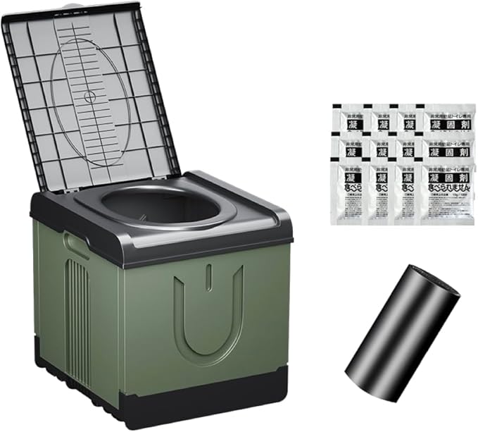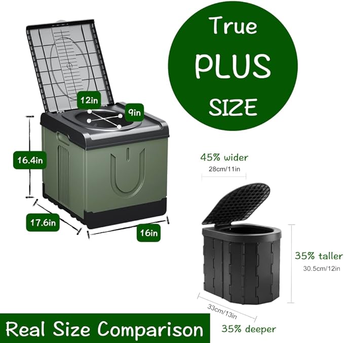 Extra Large Plus Size Big and Tall Portable Toilet, Ideal as Porta Potty for Adults, Camp Toilet, Travel Potty for Car, Trucker or Boat. Poo Gel and Bags Included. Green