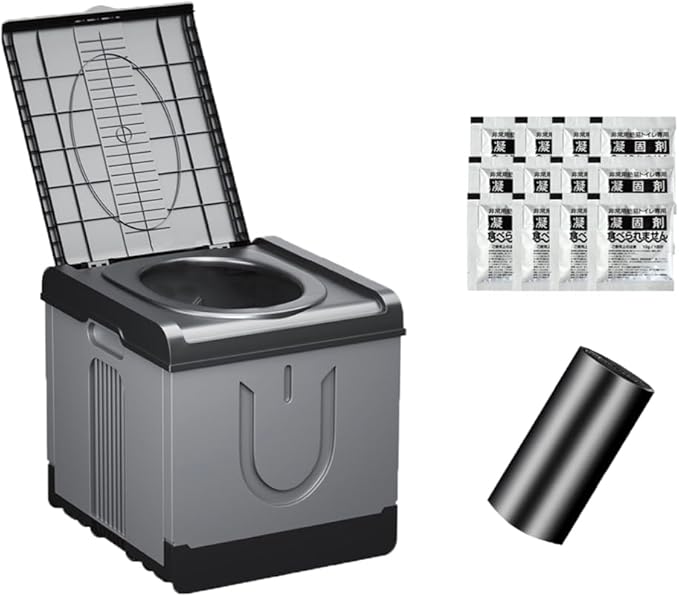 - Our portable potty is a complete emergency toilet kit: 12 packs of poo gel and trash bag included.