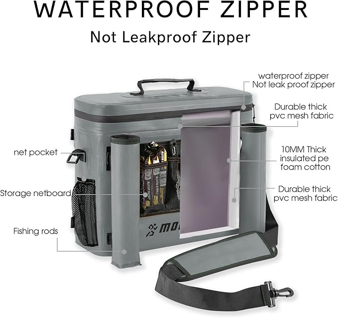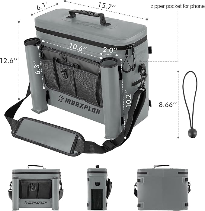 - 【Strong electroweld Structure】Morxplor Seat Back Kayak Cooler Waterproof Zipper and Waterproof Material Protect From Rain Splashes. Simply attach the bungee cord to securely attach seat cooler bag for kayak seat and fit all models of lawn chair seats. Removable storage pockets can hold keys, cell phones and fishing rods.