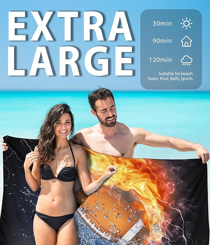 - ☀️[ Microfiber Lightweight ] High quality microfiber that absorbs water much faster than ordinary fabric! Eco-friendly, no faded and no smell. You can easily take it portable to avoid wet and cold on the beach. Multiple size options perfect for all adults and children.