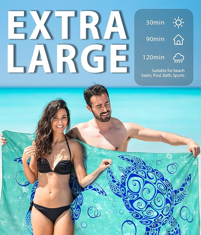 - ☀️[ Microfiber Lightweight ] High quality microfiber that absorbs water much faster than ordinary fabric! Eco-friendly, no faded and no smell. You can easily take it portable to avoid wet and cold on the beach. Perfect size for adults or kids.