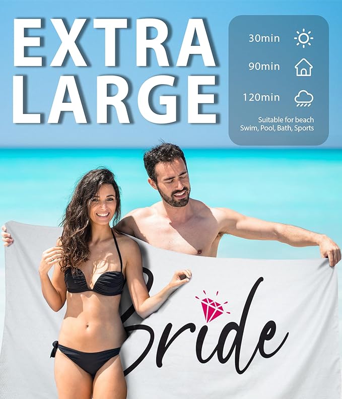 Microfiber Beach Towel – Bride Quick Dry Lightweight Sand Free Oversized Towel Accessories Travel Must Have Swim Pool Yoga Camping Gear Summer Cruise Ship Essentials Cloud Compact Gift 71" 32"