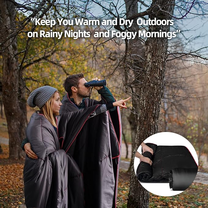 - 5.Shawl & Cover Foot: The one-person blanket is wearable! You can wear this puffy blanket when you are cooking foods, or drinking beer all while staying warm. When drinking coffee with your family in the garden, you can cover this puffy blanket to keep warm in the morning.