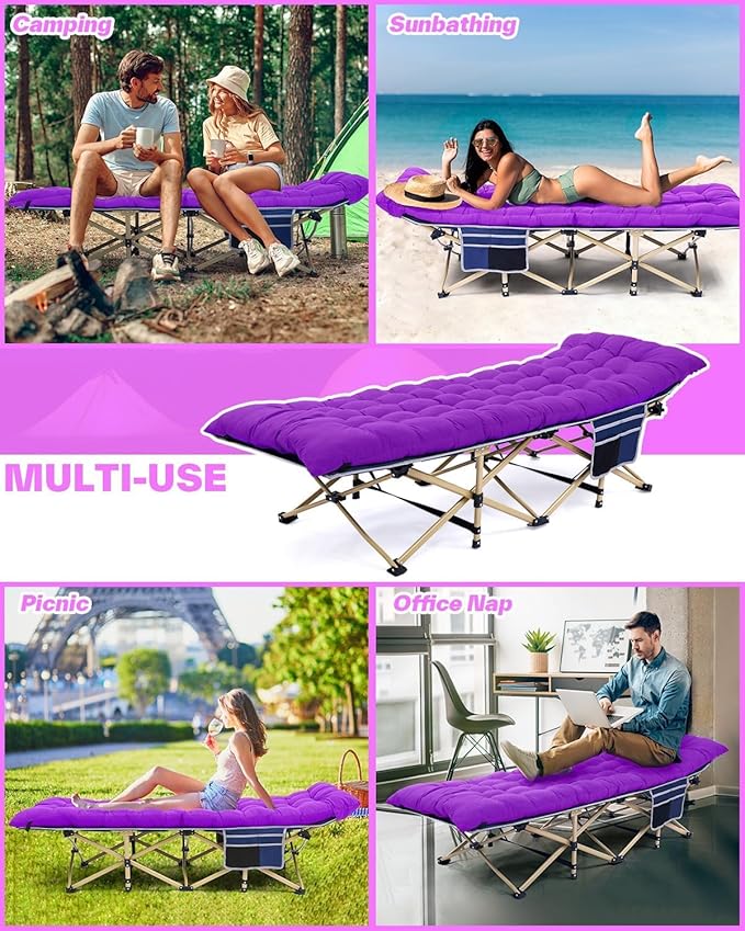 - Use Anywhere: You can bring the foldable outdoor camping cots for adults with mattress anywhere you take adventures, from indoor use to camping, the beach, the office or for visiting guests at home. Give yourself better sleep!