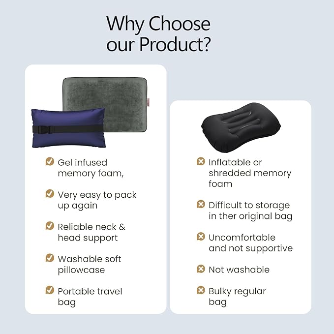 - ✅【Versatile Pillow】Not just for camping, hiking. Lightweight, compressibl memory foam travel pillow is also ideal for short trips and flights, making it a multi-functional choice for anyone in need of a comfortable pillow.