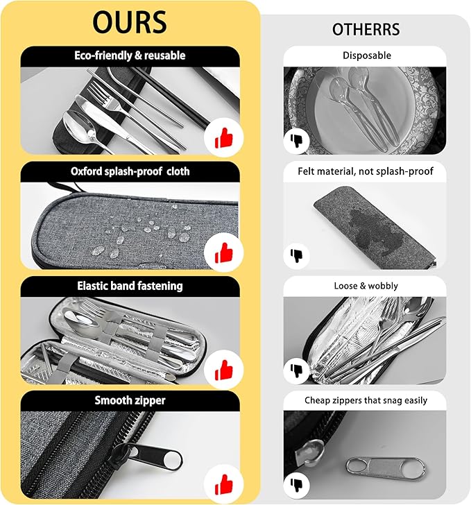 Travel Utensils Set with Splash-poof Bag, Portable Cutlery for Work, Reusable Camping Silverware Utensil, 18/0 Stainless Steel Flatware for Adult Lunch Picnic Hiking EDC Gadgets Lunch Box