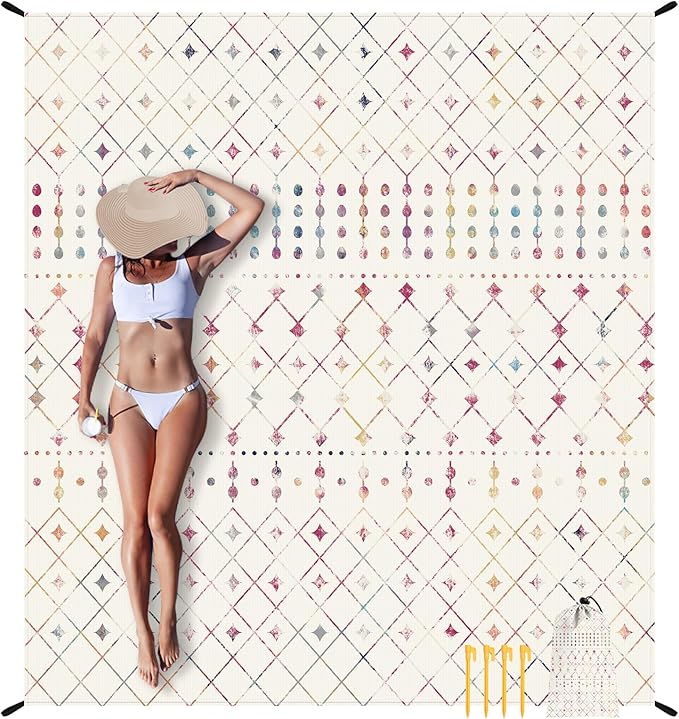 - Outdoor Versatility: Beyond the beach, these versatile outdoor blankets are perfect for picnics, travel, camping, and hiking. Featuring an eye-catching Moroccan Blythe design, they are easy to spot and come in a choice of multicolor and earthy yellow.