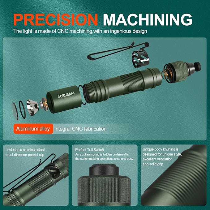 - Sturdy Flashlight: The edc flashlight adopted unique craftsmanship, made of hard anodizing aircraft grade 7075 aluminum alloy, its IP68 water resistance and 1.5 meters impact resistance make the small flashlight endure rough handling and harsh weather.