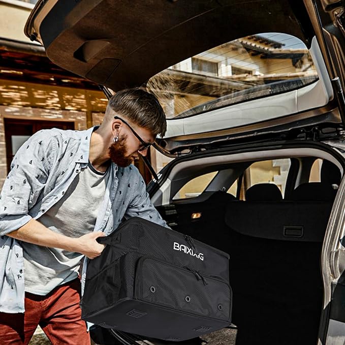 - 【High-Quality Materials】 - The shoe compartment at the bottom utilizes PE film woven fabric, designed to resist dirt. If your shoes accidentally soil this compartment, a simple wipe of surface dirt ensures cleanliness. The explosion-proof zipper, equipped with sturdy double pull-ropes, assures smooth and easy use. The overall fabric of the golf trunk organizer is 1000D Oxford fabric, known for its water repellent and wear-resistant features.