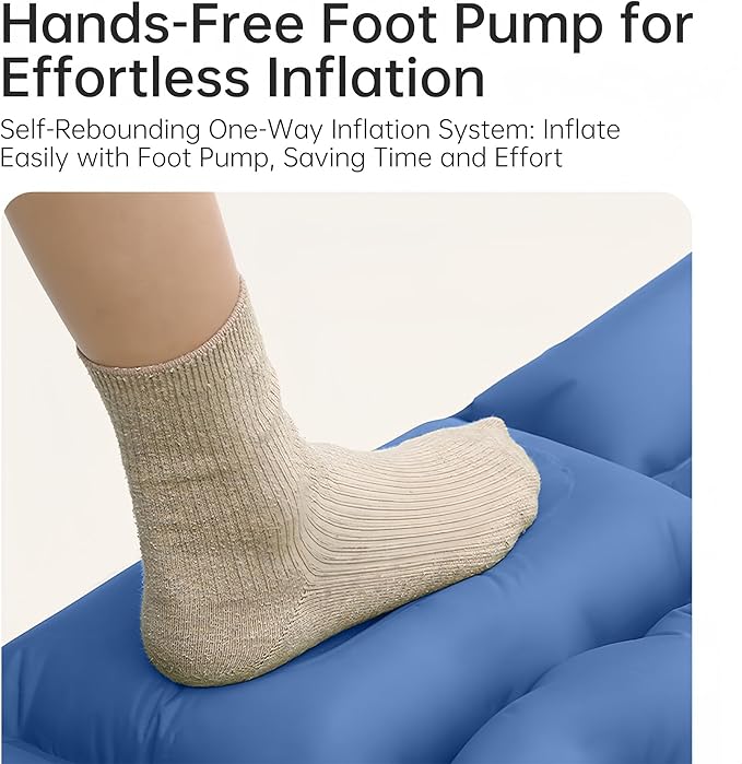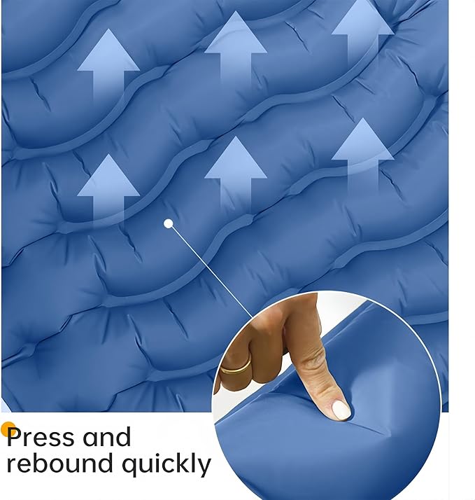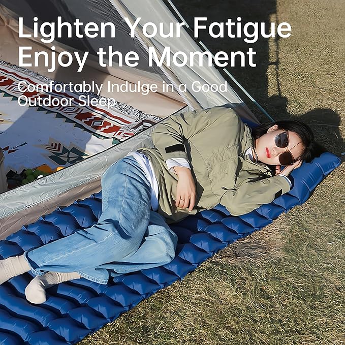 - Build-in Inflating Pump: The self-Inflating sleeping pad equipped with a built-in manual air pump, this inflatable mattress can be effortlessly inflated in just 5 minutes using your feet or hands, eliminating the need for bulky pumps or batteries, this lightweight and foldable sleeping pad ensures you'll always have the ultimate convenience.