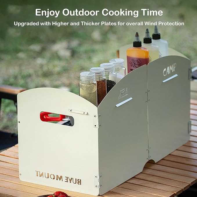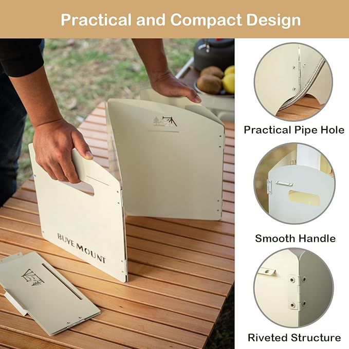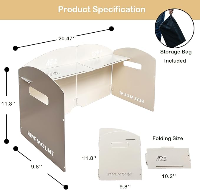 - Foldable and Portable: The windscreen is designed to be foldable, making it extremely compact and easy to carry. It conveniently fits into your backpack or camping gear, taking up minimal space while ensuring you have wind protection whenever you need it.