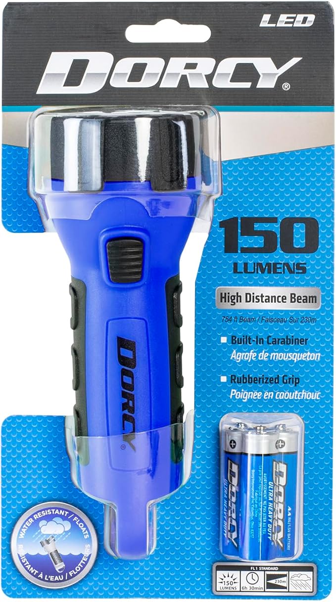 Dorcy 150 Lumen Floating Water Resistant LED Flashlight with Carabineer Clip Bundle - Blue (41-2514) and Neon Green (41-2513)