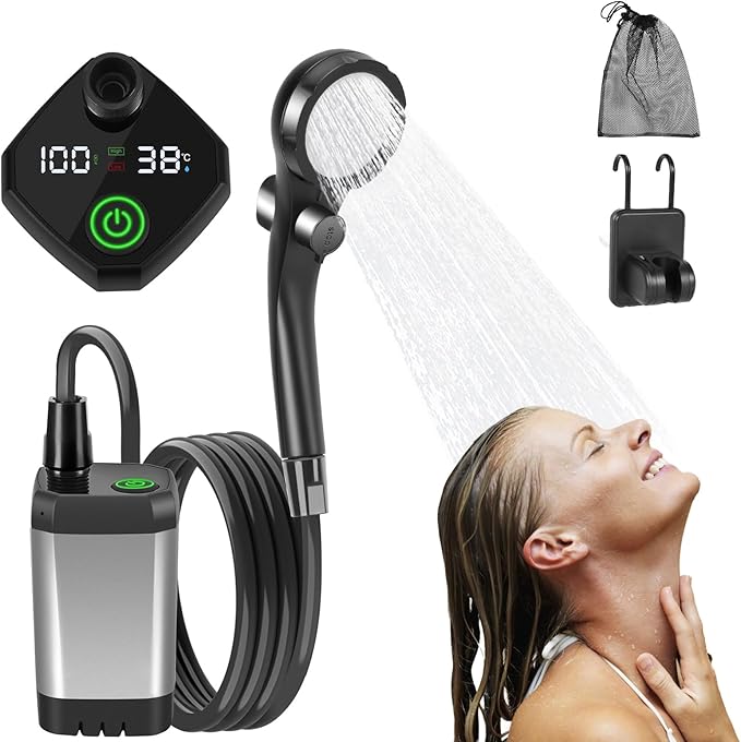 AlpsWolf Portable Shower for Camping, 6000mAh Rechargeable Camping Shower with Digital Display, Portable Shower for Camping, Beach, Hiking, Pet Cleaning