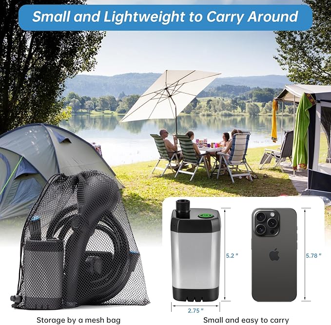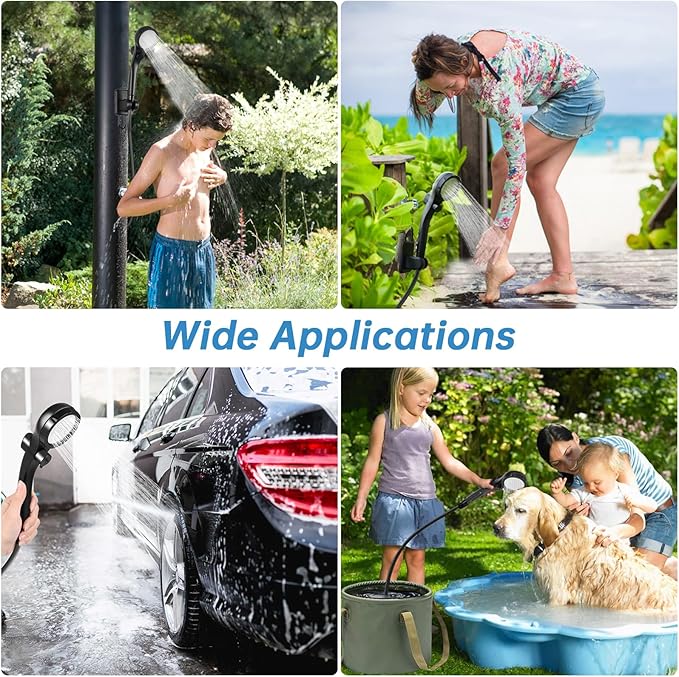 - 𝗖𝗼𝗺𝗽𝗮𝗰𝘁 𝗮𝗻𝗱 𝗣𝗼𝗿𝘁𝗮𝗯𝗹𝗲 - Weighs only 2.3lbs, lightweight & compact camping shower kit, easy to carry for outdoor activities, like camping, hiking, pet cleaning, car washing, plant watering, or washing off sand on the beach.