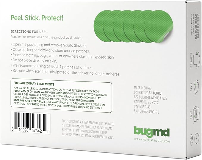 - The BugMD Squito Stickers are a great alternative to traditional mosquito repellent. Our stickers do not contain any harsh chemicals and are safe when used as directed.