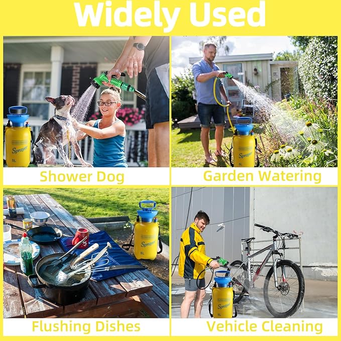 • 【Working Principle】Finderomend portable shower uses the pressurized air in a sealed container to press the water out for shower (the water can be sprayed for about 1 minute when the air is full,water volume can be adjusted by switch on the shower head, and the water spray time is inversely proportional to water flow of the shower head), no need to connect the faucet or use electricity, with just water you can take a refreshing shower anywhere.