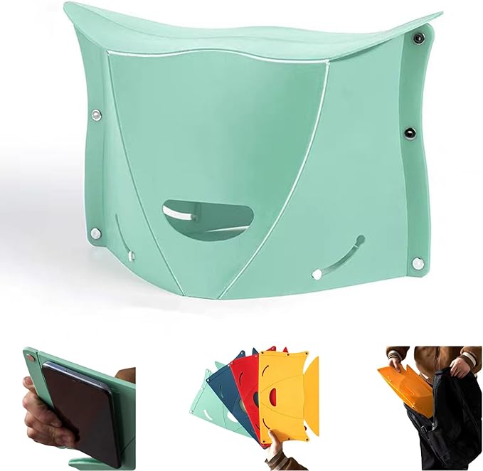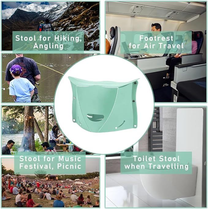 Folding Lightweight Portable Stool, Thickness of 0.5 in, Collapsable Foldable Travel Potty Stool, Footrest for Air Travel. Opens Easy for Camping Hiking Picnic Fishing Subway Party Ball Game (Green)