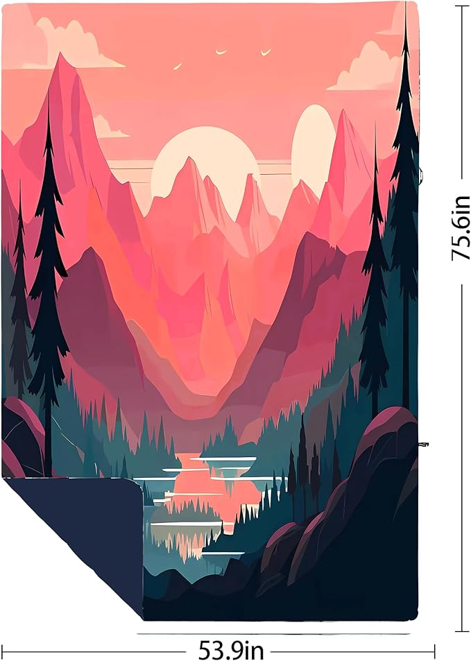 Yizheer Sunset Printed Camping Blanket,Lightweight Down Alternative Puffy Camping Blanket Packable Outdoor Blanket for Camping,Traveling, Stadium, Hiking, Picnics 76" x 54"