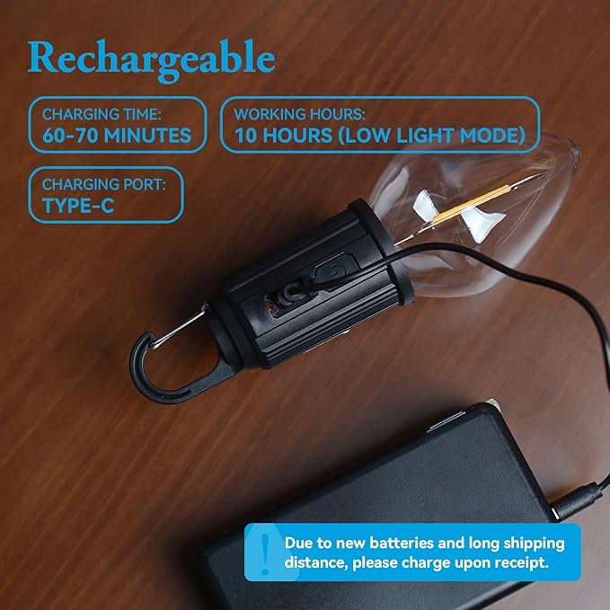 - Fast Charging and Long Battery Life:Enjoy extended illumination with our long-lasting outdoor lamps. These rechargeable battery-operated lanterns it only takes 60-70 minutes to fully charge using a type c charging cable. High brightness lasts 8 hours and low 10 hours. Perfect for outdoor settings, these battery-powered lights are versatile and practical. Whether used as gazebo lights outdoor waterproof or as a battery-operated pendant light for your backyard, they offer consistent performance and convenience.