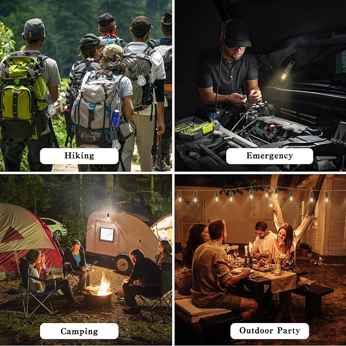 - Waterproof and Durable:Equipped with a waterproof rubber stopper and a drop-resistant build, this camping light is perfect for various outdoor scenarios. The touch switch ensures easy operation, making it a must-have for car camping, hiking, summer camp essentials, tent accessories, and emergency lights for home, providing reliable performance in any condition