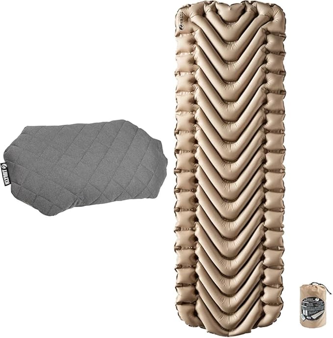Klymit Luxe Travel Pillow and Insulated Static V Inflatable Sleeping Pad Bundle for Camping and Backpacking