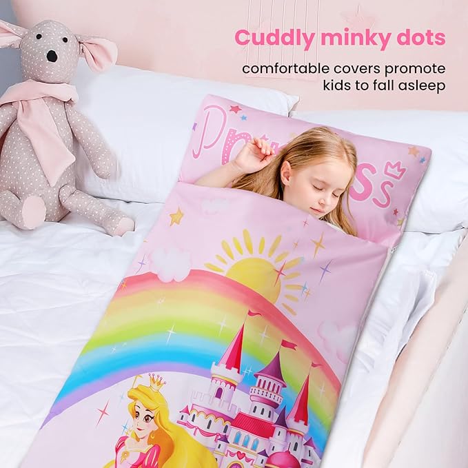 - High Quality; Our slumber bags with pillow and blanket for kids are made of high-quality polyster and an interior lining made of minky dot, which creates a warm, comfortable, super soft and calm sleeping environment for your child, delicate with your toddler’s skin.