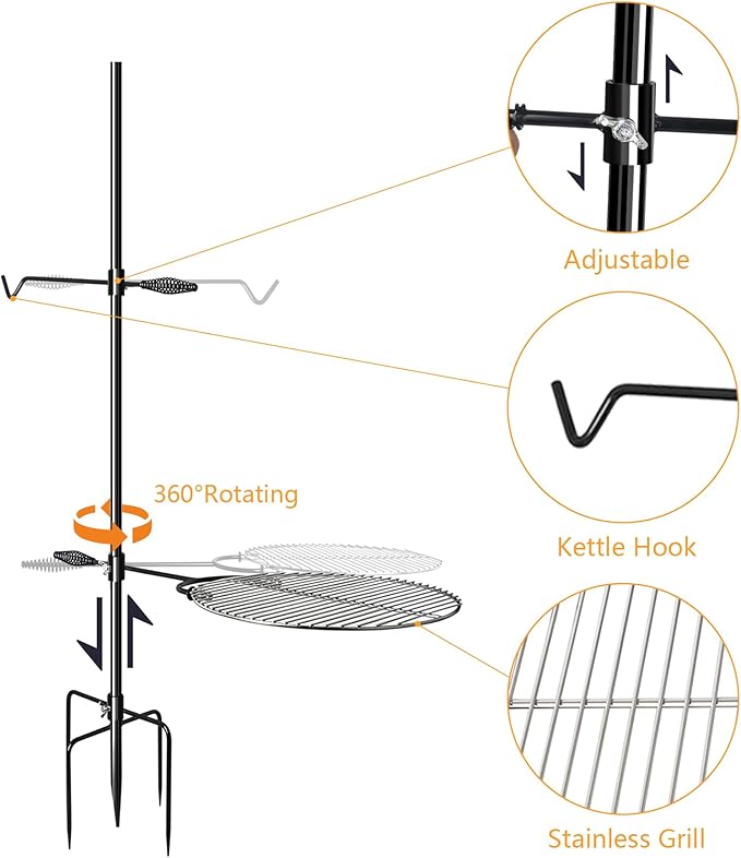 - 360° ROTATABLE & ADJUSTABLE: The grill can be rotated and the height adjusted to your desired position, allowing for even cooking and easy access to your food