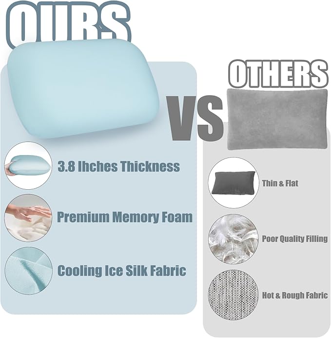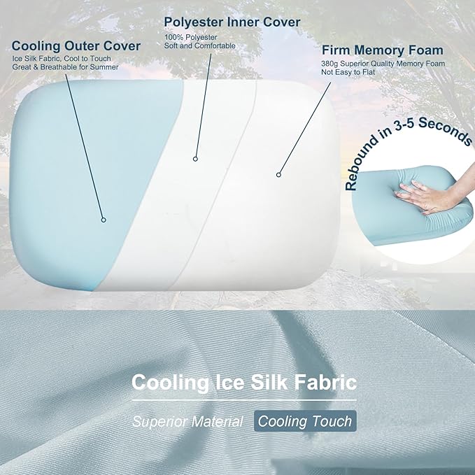 - Cooling & Skin-Friendly.Travel pillow's outer cover is made of ice silk, so you can feel cooling when you lay on the pillow. Cooling bed pillow is breathable and can allowing fresh air to flow throughout the camp pillow and making you wake up feeling refreshed.