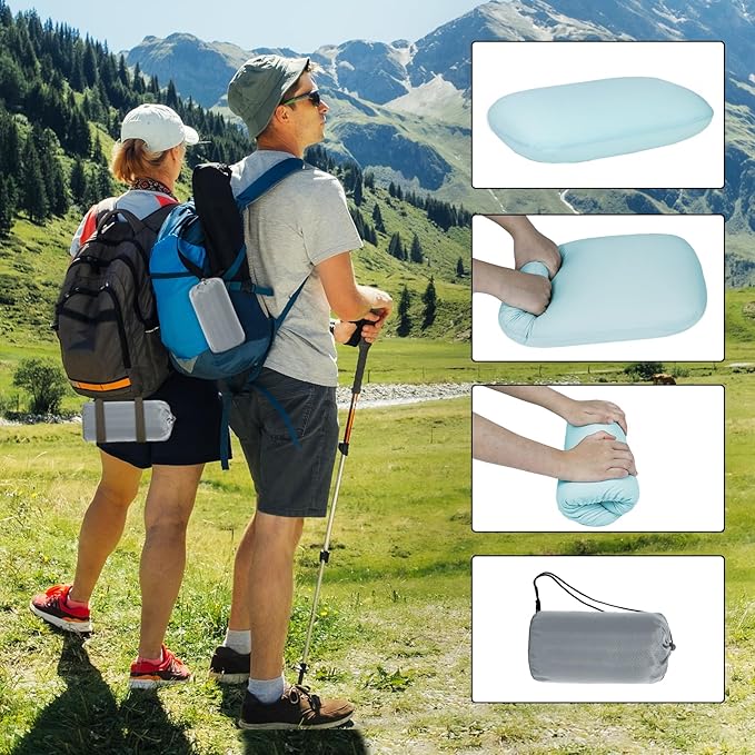 tuphen Camping Pillow Travel Pillow Cooling Memory Foam Pillows for Sleeping Camp Backpacking Airplane Trip Beach Outdoor Lightweight (Blue)
