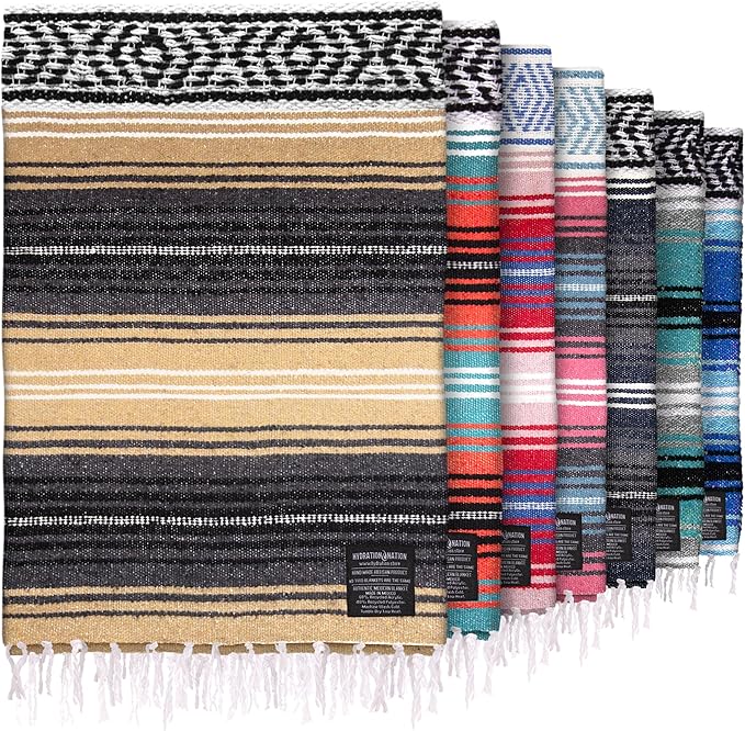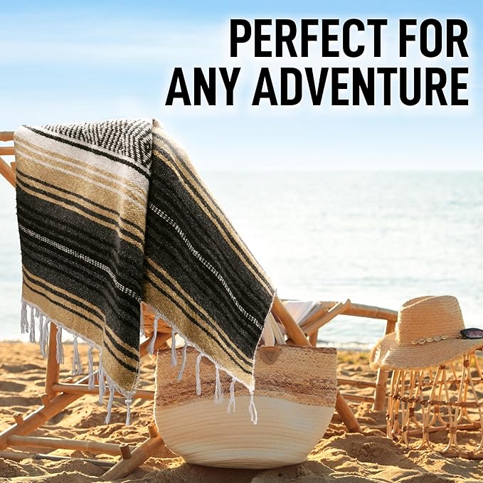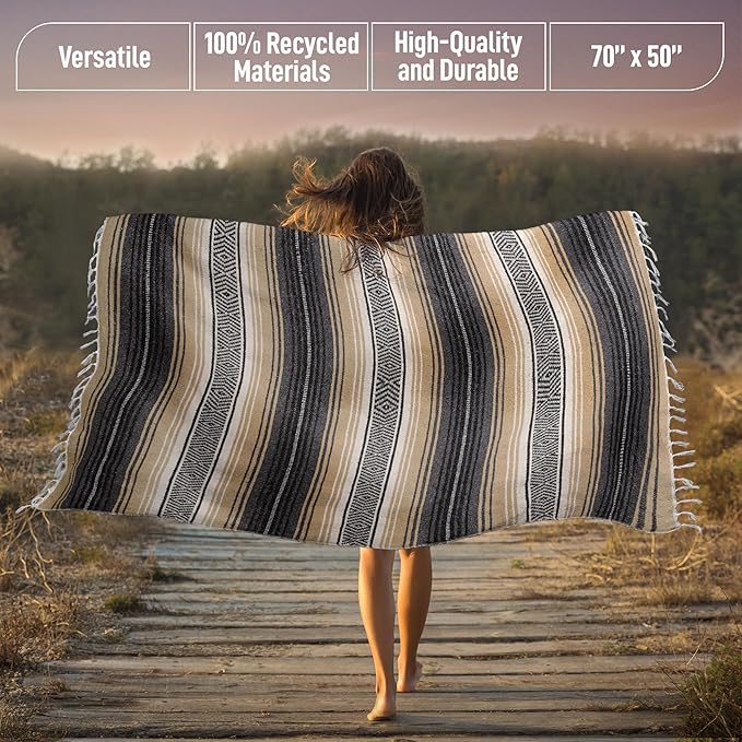 - VERSATILE HANDWOVEN BLANKETS: These serape blankets stay true to their heritage as each blanket is beautifully handcrafted with slight variations in size and weight as part of the timeless look and feel. Place it on the wall as part of your western home decor, or use it as a yoga blanket, car blanket, picnic blanket, saddle blanket, beach blanket, and much more.