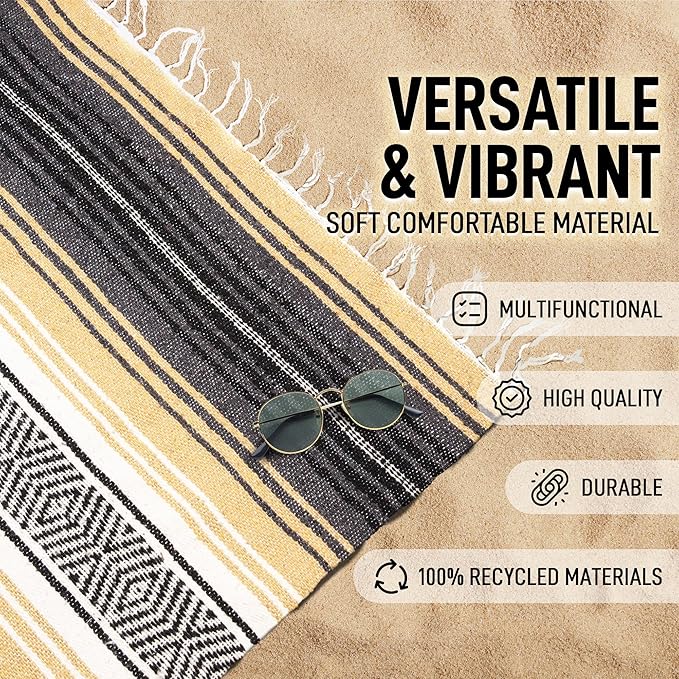 Authentic Large Handwoven Mexican Blanket - Soft Yoga Blanket - Durable Serape Blanket - Lightweight Falsa Blanket, Beach Blanket, Camping Blanket, Picnic Blanket, Outdoor Blanket 70"x50" - Sand