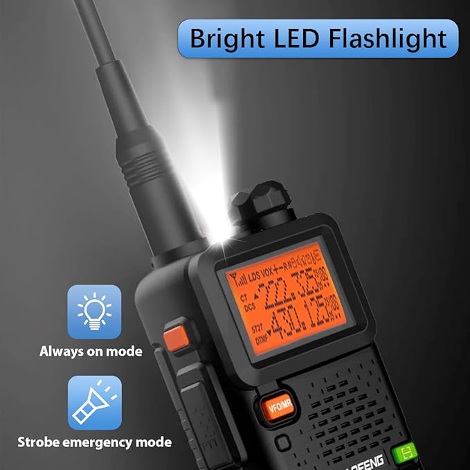 - More Function: The ham radio has more function such as VOX, dual watch, TOT, SOS, flashlight, keypad lock, backlight adjustable in 3 colors, etc. With a color screen, full keypad, and clear menu interface, the walkie talkie offers good operation for users