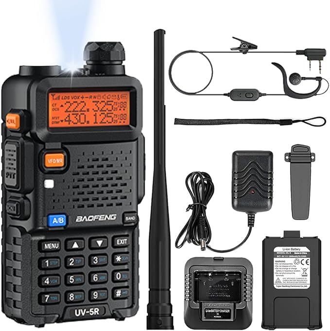 BAOFENG UV-5R Two Way Radio Long Range Walkie Talkies for Adults Handheld Ham Radio with 128 Channels, DTMF, VOX, SOS, Flashlight, 1800mAh Rechargeable Battery, Earpiece