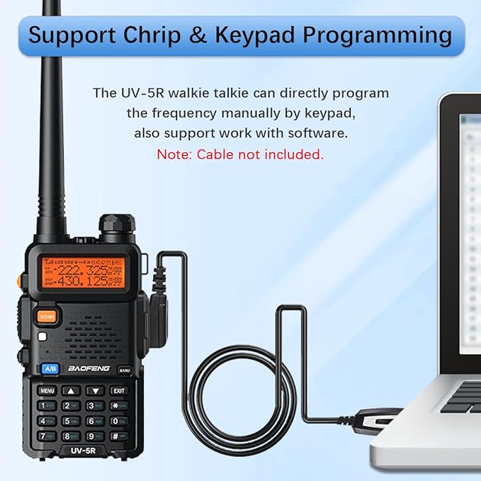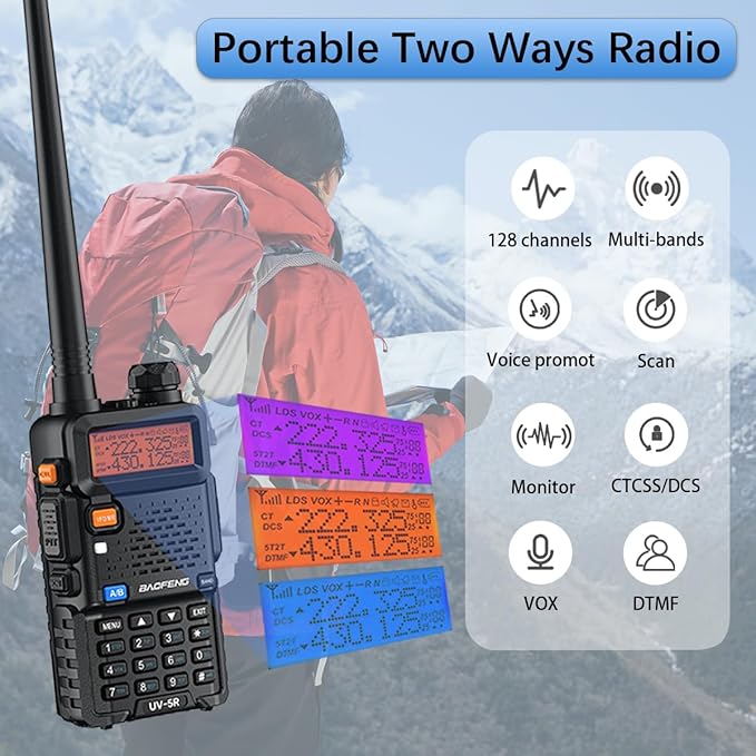 - UV5R Walkie Talkie: BAOFENG ham radio features 128 channels and DTMF for specific communication needs. It also provides 50 CTCSS tones and 210 DCS codes, with adjustable squelch in 9 levels, ensuring a private, smooth, and clear communication experience