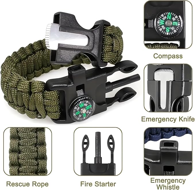 - Included Components : Magnesium, ferro starter, compass, emergency whistle, 9' code, emergency tent