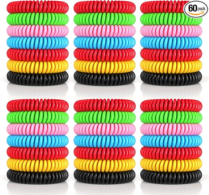 60 Pack Mosquito Repellent Bracelets, DEET-Free Mosquito Bands for Adults & Kids, Individually Wrapped Repellent Wristbands, Camping Travel Beach Essentials