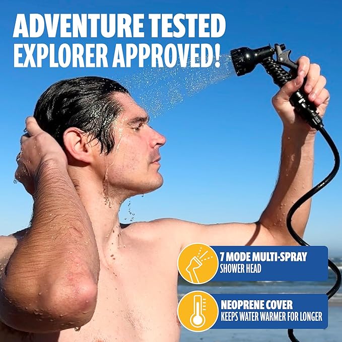 SUN NINJA Portable Shower, Outdoor Portable Camping Shower with Neoprene Cover, Portable Beach Shower Surf Rinse Kit, High Pressure Multi-Purpose Sprayer for Outdoor Essentials, Dog Walking & Hiking
