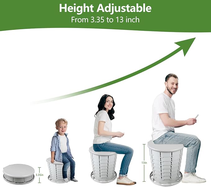 - Height Adjustable Outdoor Toilet : Our portable camping toilet is designed with a Height Adjustable feature, from 3.2 inches to 13 inches, making it a perfect fit for both kids and adults. Enjoy convenience and comfort on-the-go with this adaptable composting toilet!