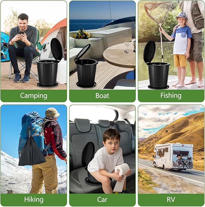 - Multi-Functional Camp Toilet : Use it as a camp toilet portable, collapsible stool, storage box, side table, or even a trash can - the possibilities are endless! Whether you're camping, hiking, on a long trip, fishing, boating, stuck in traffic, or simply indoors. Embrace the convenience and adaptability of our portable toilet for adults home use for all your adventures and everyday needs!